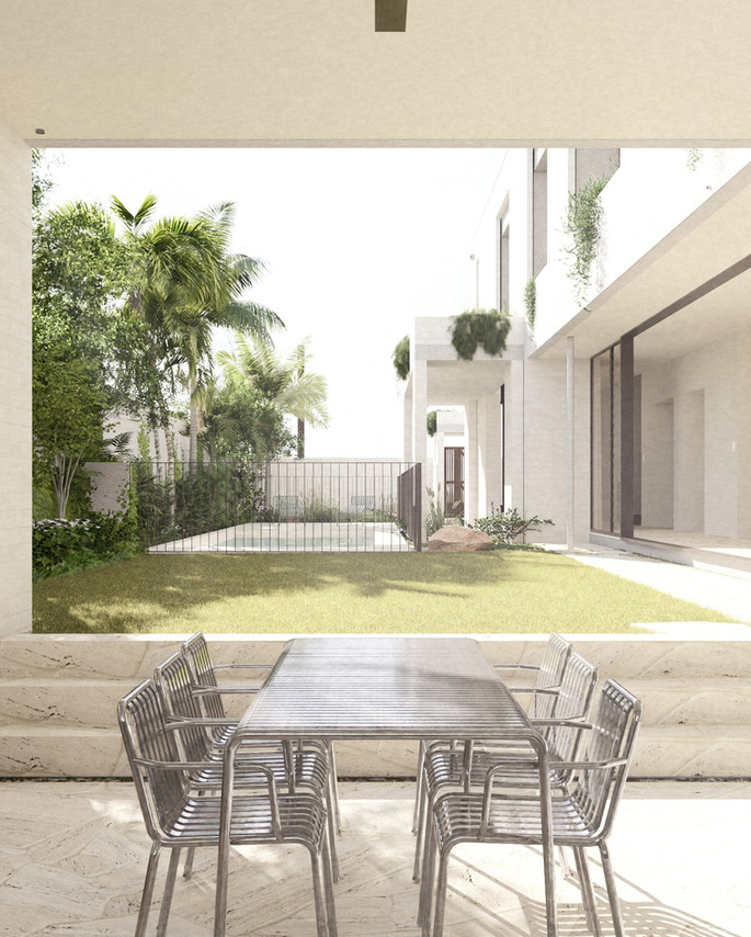 A two-storey family home in Burleigh Heads, a short walk from the beach. The design centres on a generous outdoor living area, with the house organised around a private yard, lush gardens and a pool.